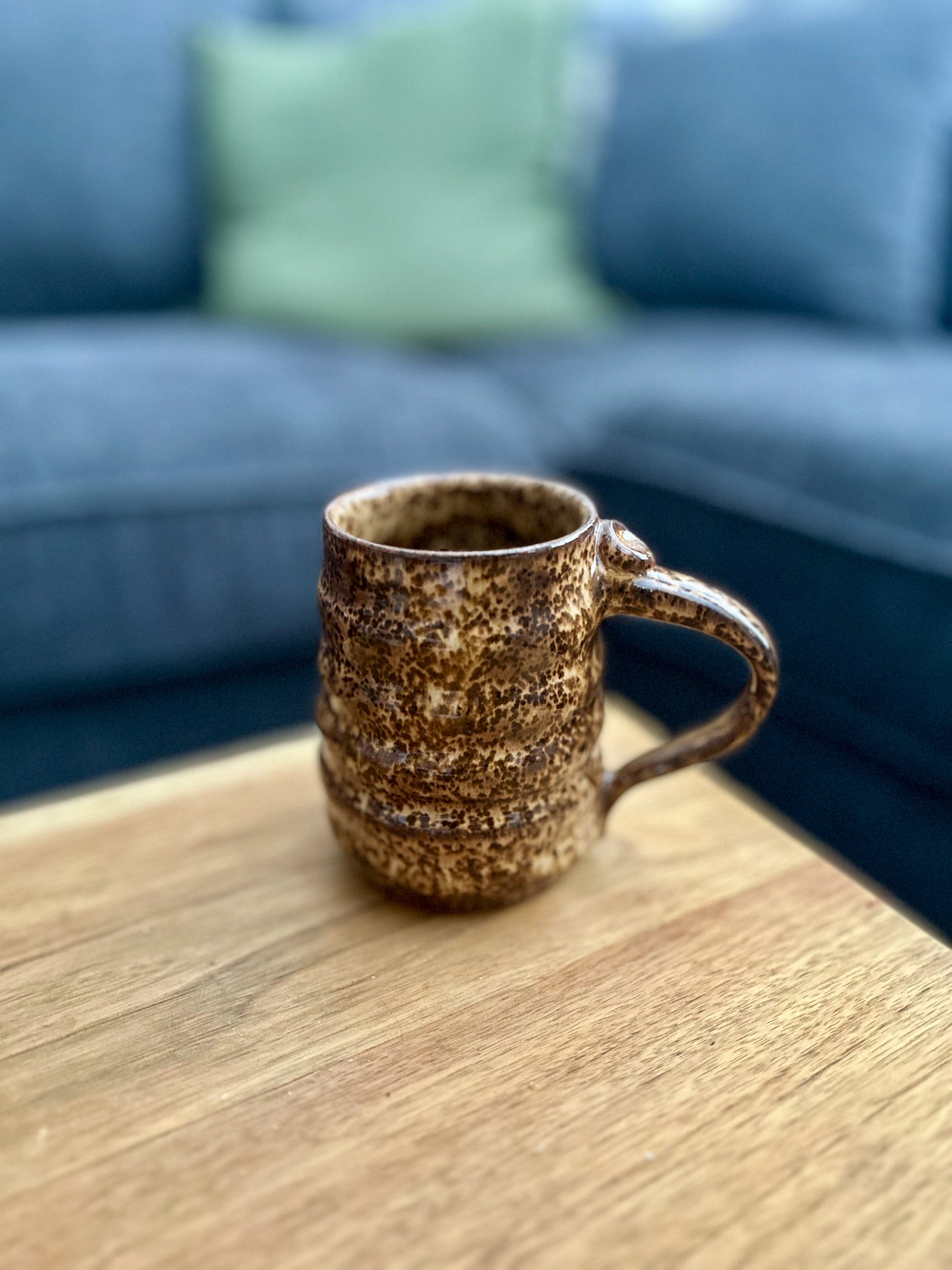 - Brown with dark brown speckled glaze on speckled clay
