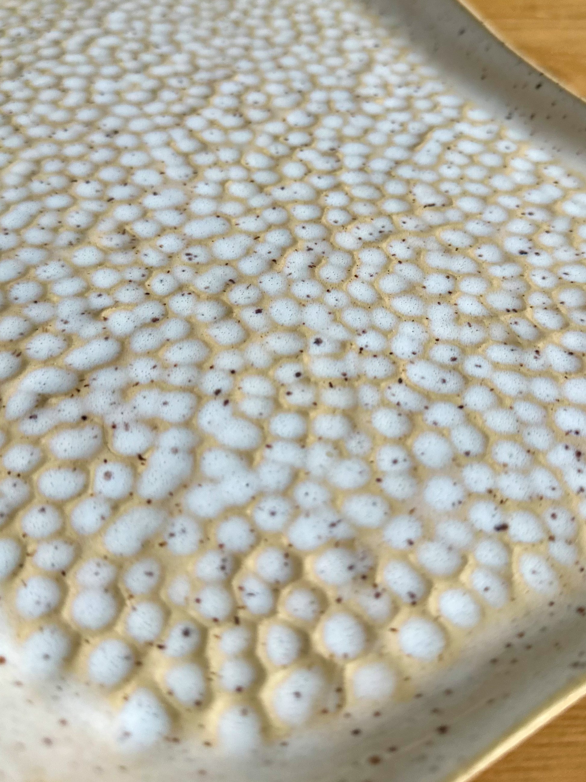 Perfect for adding a unique touch to your hosting experience. Each platter is hand stamped, creating a one of a kind texture. Host in style, or gift in style with this playful and quirky piece!