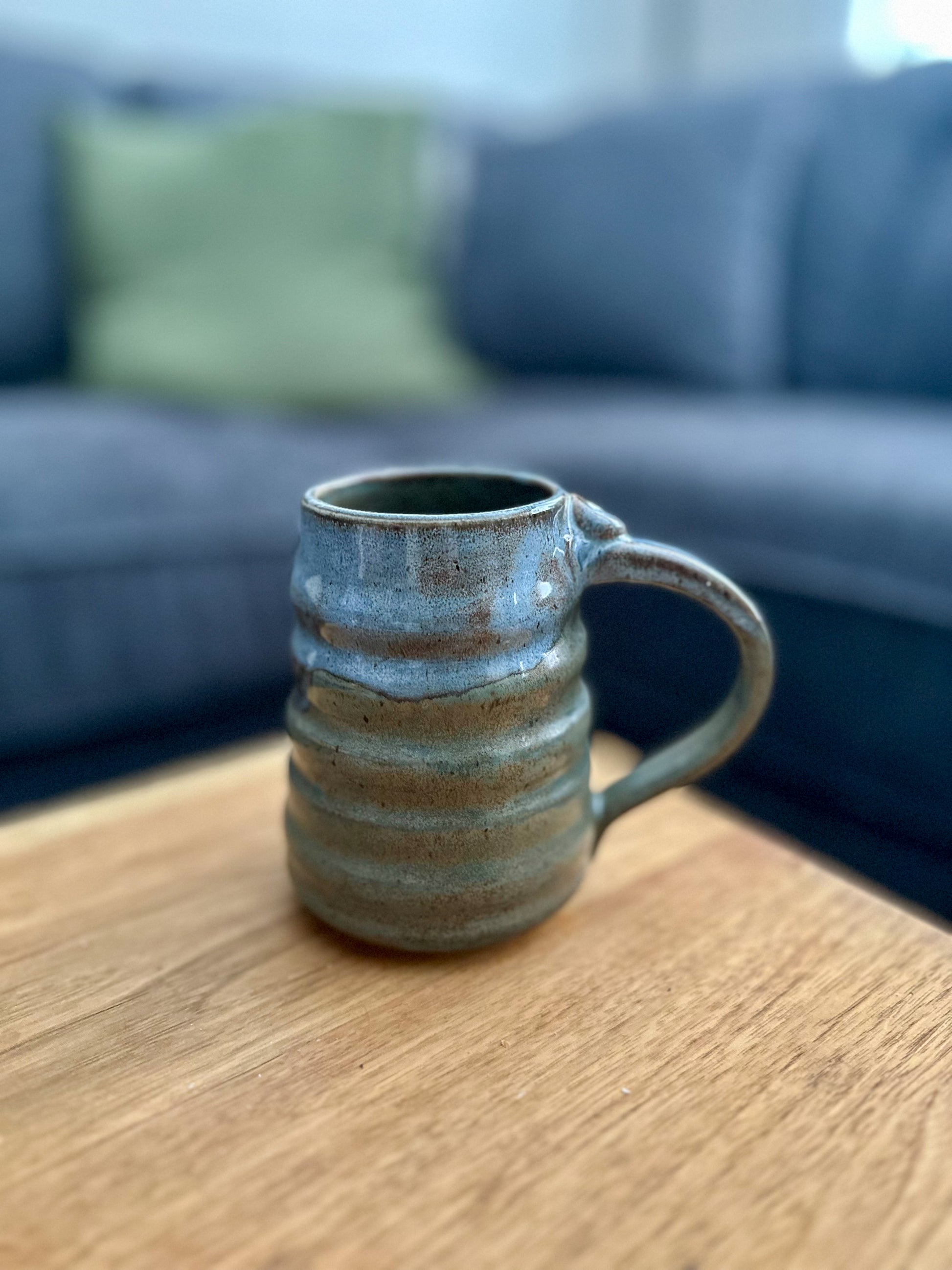 Each wavy mug is carefully crafted, hand painted, and designed with a unique tapered and wavy silhouette that keeps your drink hot and your hands cozy.