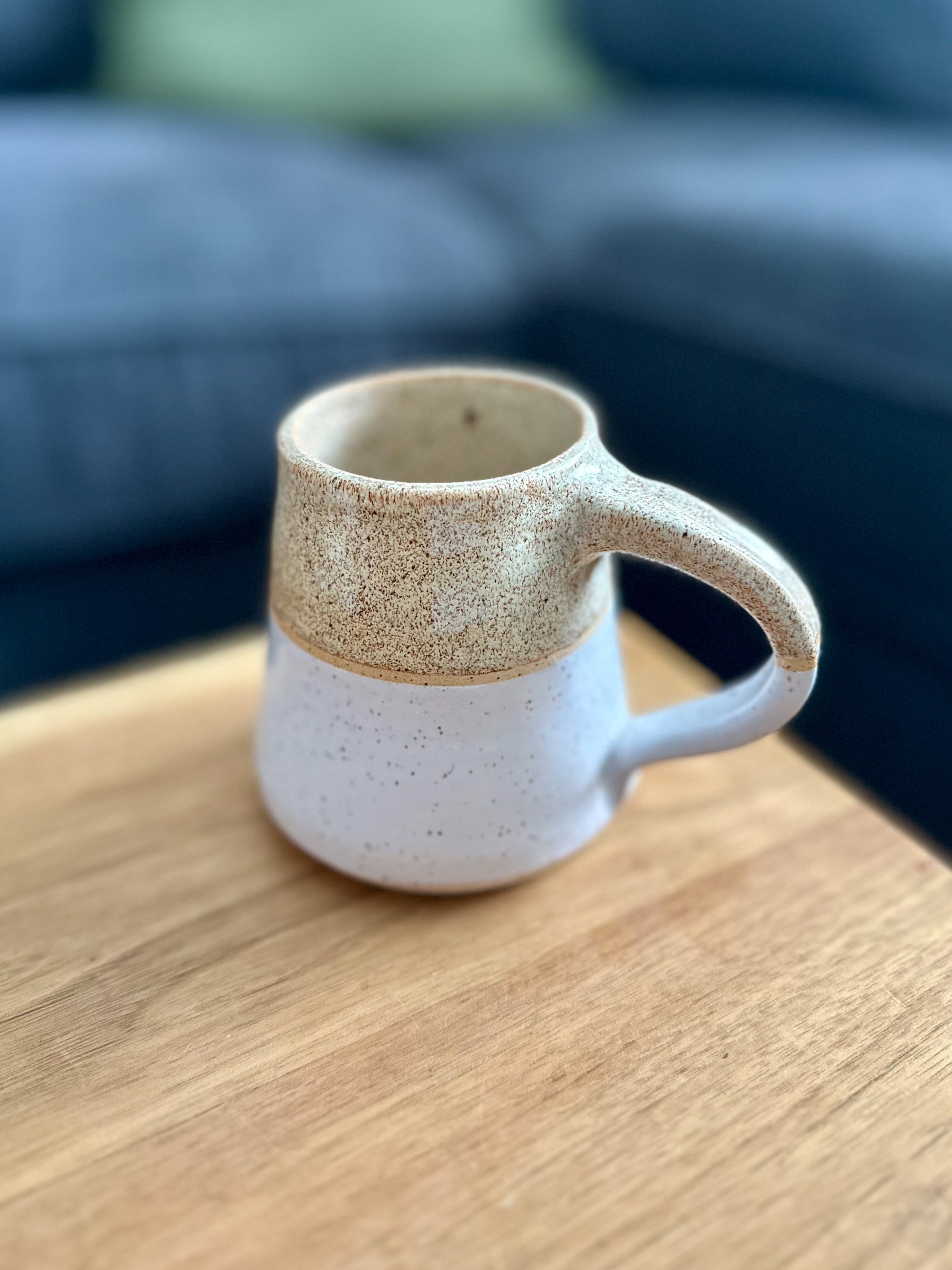 WHITE + BROWN SPECK DUO TONE GRID MUG